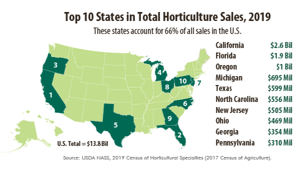A handful of states lead the nation in floriculture production, thanks to favorable climates, infrastructure, and long-established grower networks. California consistently ranks at the top, producing a significant share of the country’s cut flowers and potted plants. Florida follows closely, known for its foliage plants and tropical varieties that thrive in its warm, humid environment. Michigan, Texas, and North Carolina also stand out as major contributors, each specializing in different segments of the market, from greenhouse-grown annuals to hardy nursery stock.